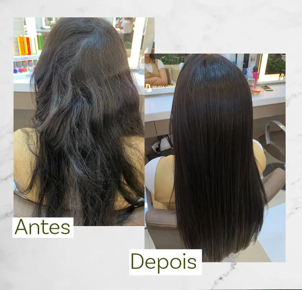 Traz um resultado natural, leve, sem ficar com aquela aparência de cabelo endurecido e sem movimento. Utilizamos somente frascos recicláveis e embalagens recicladas. Após o enxague do anti volume apenas com água abundante, no dia da aplicação não deve ser usado nenhum outro produto nos cabelos. Não aplicar nenhum creme, além de não ser necessário, pode comprometer o resultado.
